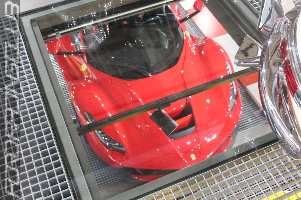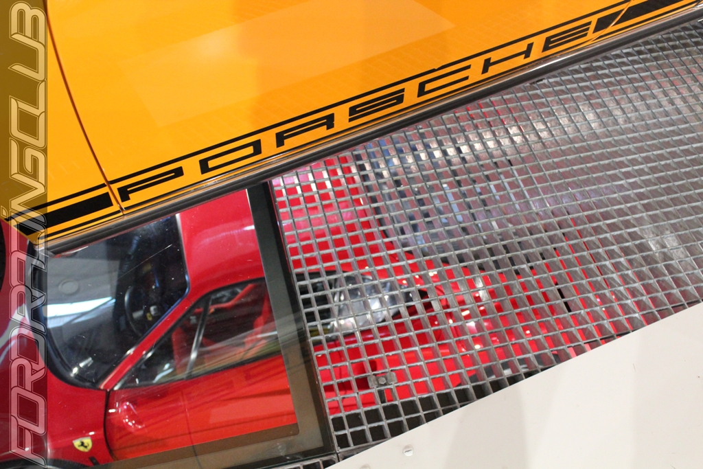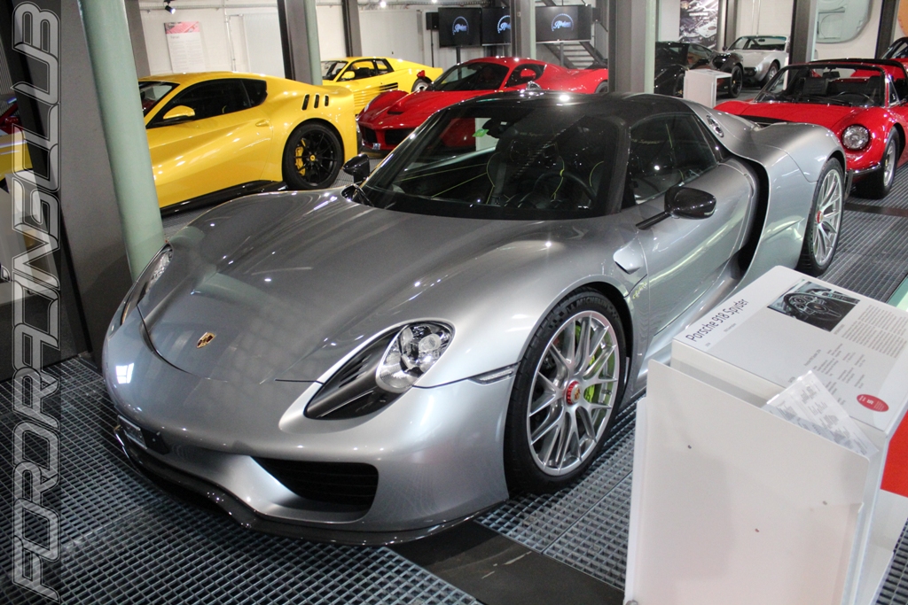 Les deux premières en entrant à gauche font un large honneur aux italiennes : Alfa Romeo 8C, LaFerrari, Testarossa, 246 GTS, Daytona, F40, 365GTC/4, Lamborghini Miura. Parmi elles, se cachent quelques Porsche comme les 904 (ce modèle a roulé dans la série culte « Miami Vice » des années 80), Carrera GT, et la dernière-née la GT3 RS. On y trouve aussi le « mur des sons » où il suffit de sélectionner un modèle pour entendre le bruit de son moteur.
