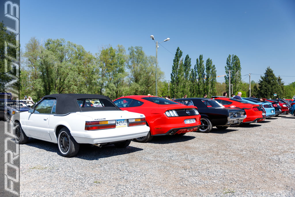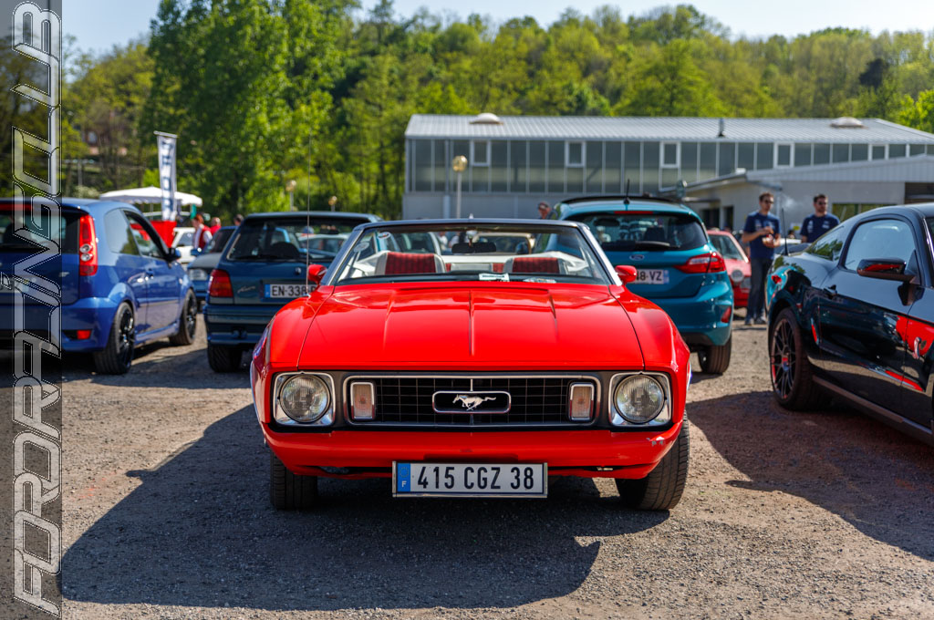 Pour les 50 ans de la Capri, quelques beaux modèles firent la route dont une magnifique Capri RS avec sa robe blanche et bleue. Mais également une série de Mustang allant de 1967 à la dernière de 2018 en passant par une Mustang LX, une Boss 302, ou encore deux belles Mustang du début des année 1970.